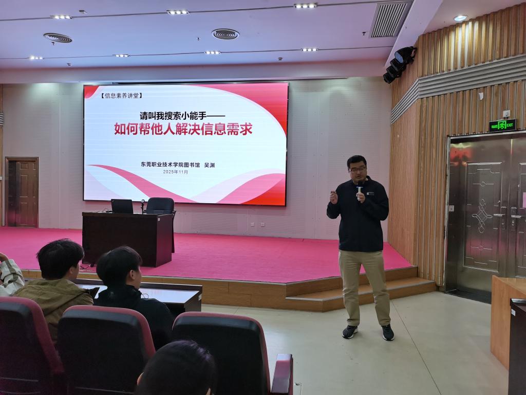 11月19日下午,图书馆在学术报告厅举办信息素养专题讲座——“请叫我搜索小能手:如何帮他人解决信息需求”。讲座由图书馆副馆长吴渊主讲,吸引了近300名学生踊跃参与。