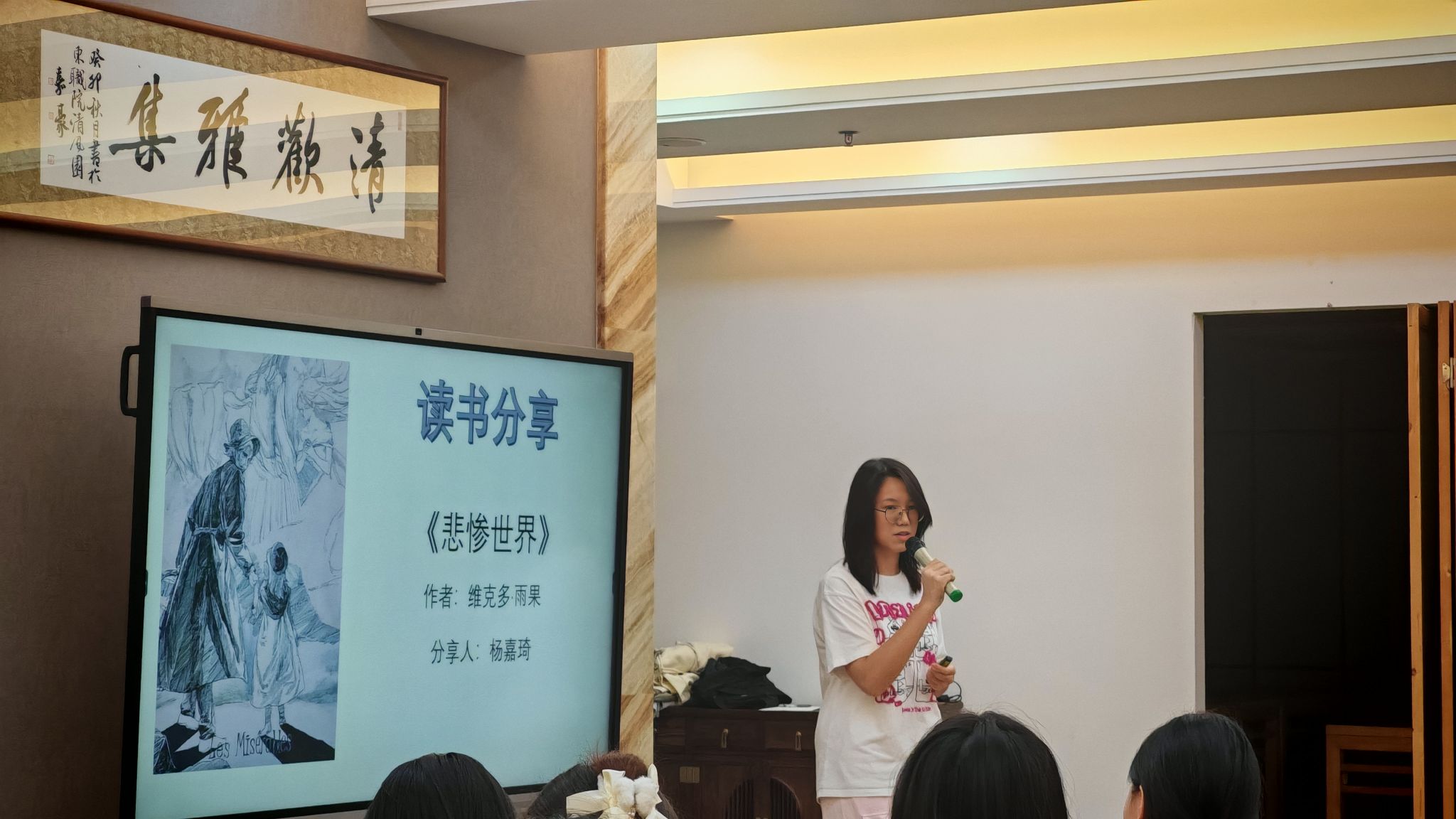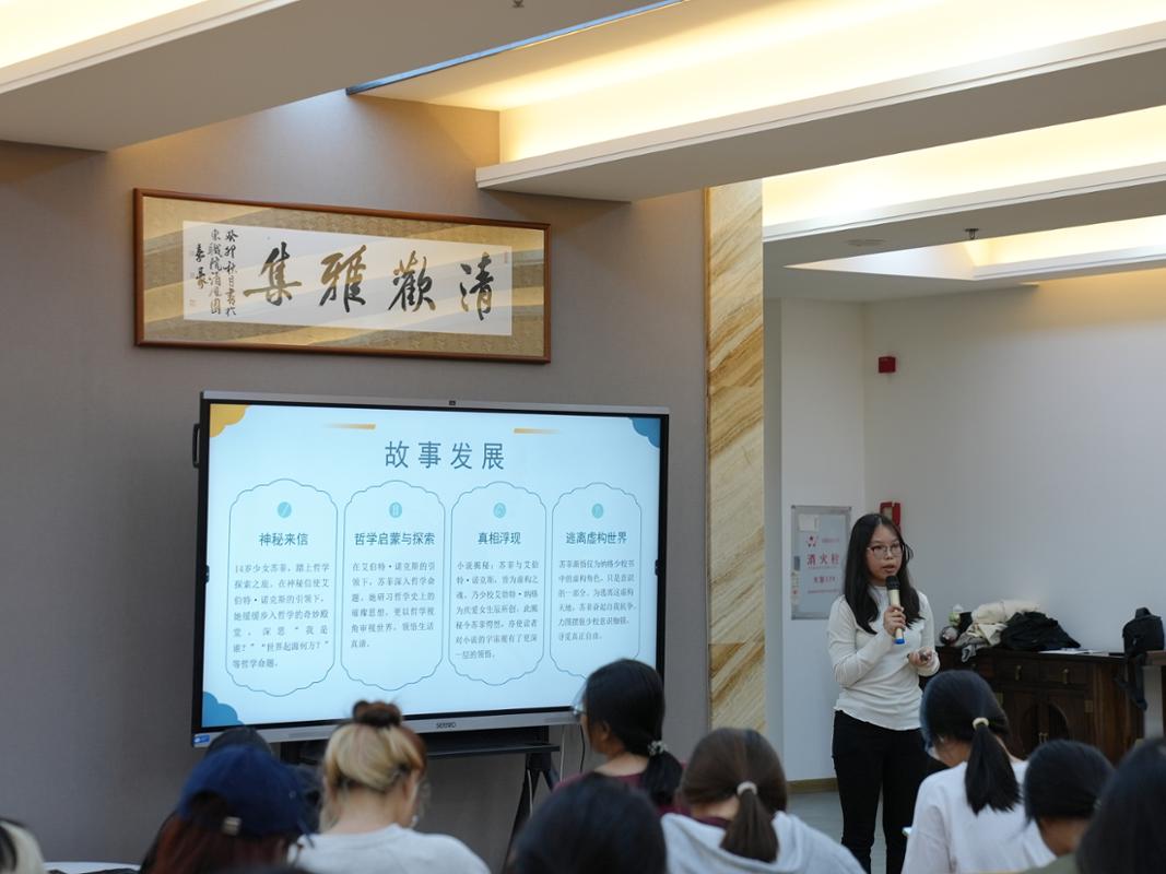 分享会上,五位同学围绕五本书,分别介绍了自己的阅读经历和读书心得。杨嘉琦为大家解读经典名著《悲惨世界》,从作品的创作背景入手,分析了主人公跌宕起伏的心路历程及背后因果,指出这是一部关于爱与救赎的伟大著作,让我们在宏大叙事中看见苦难里闪耀的人性光辉和生命力量;岑韵珊带来《苏菲的世界》,她以书中的神秘问题入手,引发现场思考,引导大家学会以哲学视角审视世界、追问生命意义、领悟生活真谛;卢楚晰通过《房思琪的初恋乐园》,从文学视角叩问现实,指出这不仅是个人悲剧的记录,更是一份沉痛的社会证言,以唤起大家对生命尊严的深切关怀;吴嘉晰深情讲述了《你当像鸟飞往你的山》中作者逃离原生家庭的经历,分享书中关于如何通过教育重塑自我的真实故事,并对书名进行了个人独到的解读,引发现场深深共鸣;邵和月从《情商谈判》中提炼出沟通智慧与人生策略,如“专注于当下、承认自身偏见”等,为大家的日常交往带来启发与借鉴。