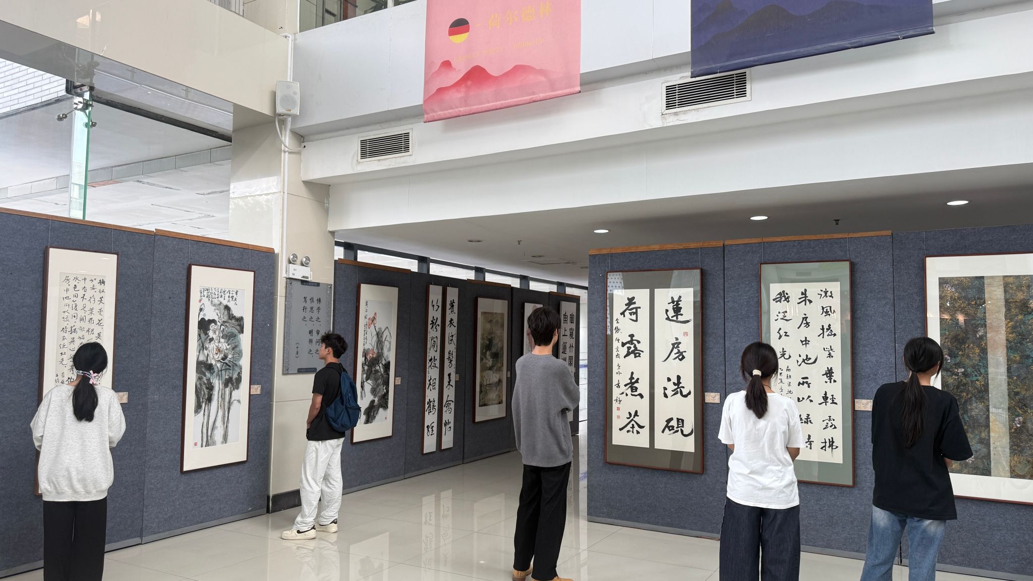 展览现场,师生们驻足凝视欣赏,于润物细无声处,感受传统书画艺术的熏陶,细品笔墨流转的高洁意境,体悟莲之清韵与人格修为的内在契合。展览将持续至明年三月,欢迎师生前来观展,共赴笔墨之约,品味莲之雅韵。