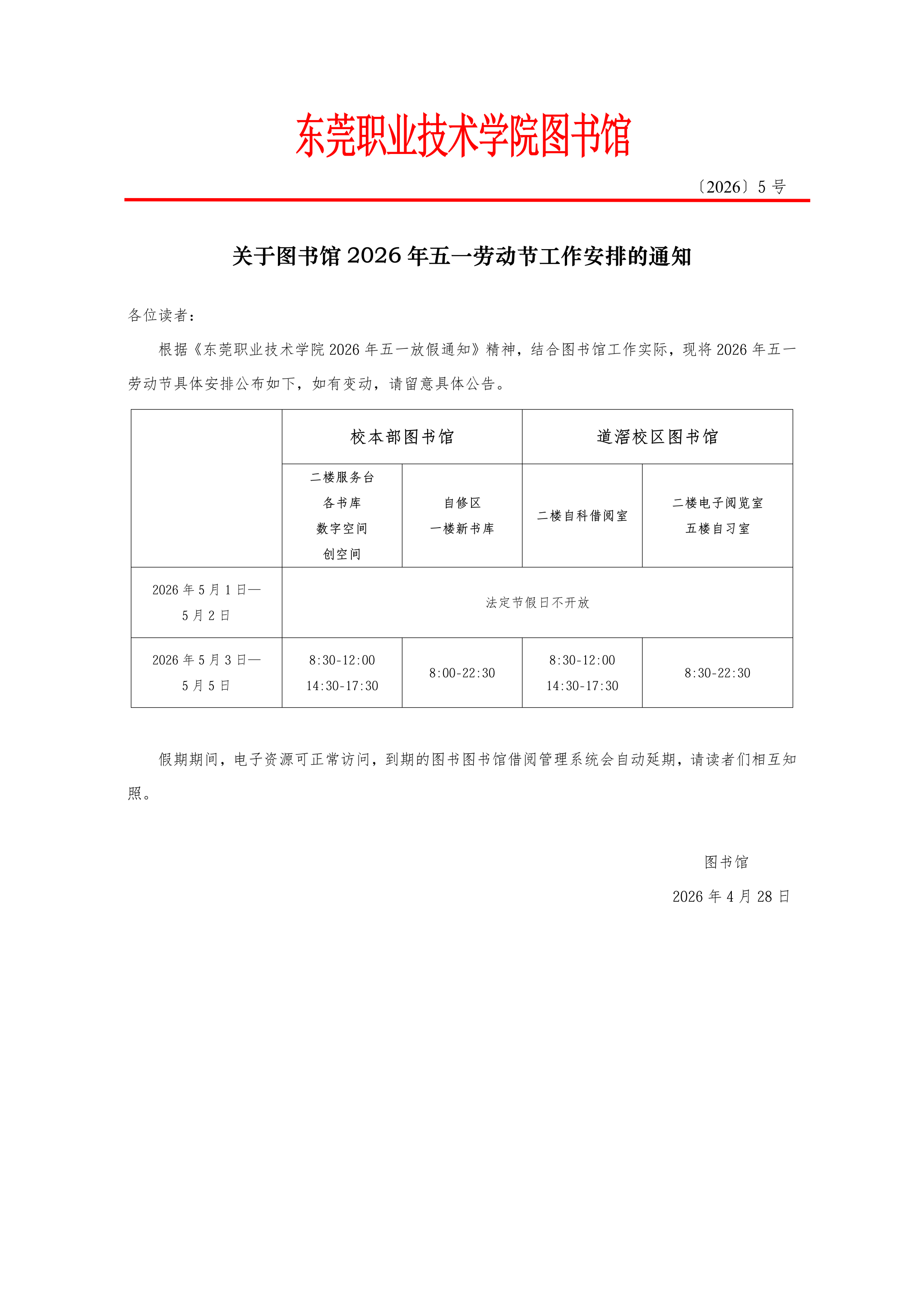 关于图书馆2026年五一劳动节工作安排的通知